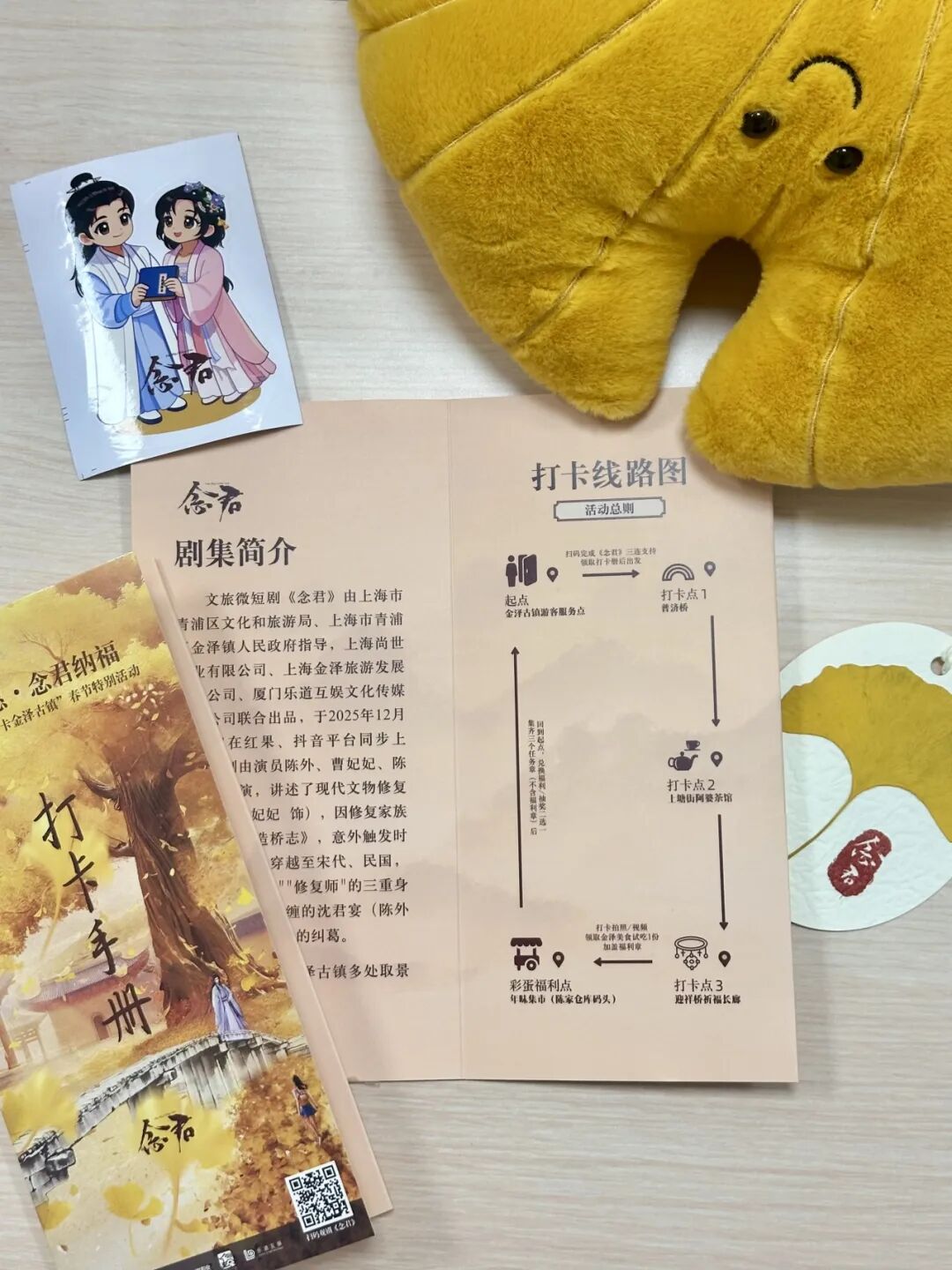 集齐3个任务章,即可兑换《念君》限定周边,或参与抽奖,赢取金泽古镇文创大奖!