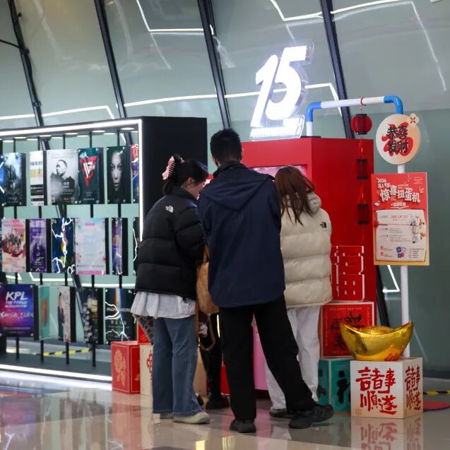 除演出活动外,场馆内的马年新春主题装扮“马上有票”也吸引了众多歌迷打卡,一层大厅同步举办“十五年海报特展”,500余幅珍藏演出海报全景回溯场馆十五载星光历程。观众还可参与场馆15周年互动活动,凭场馆历年活动票根在指定打卡点完成社交媒体分享即可参与抽奖,赢取商户优惠券、15周年限定纪念品等礼品。