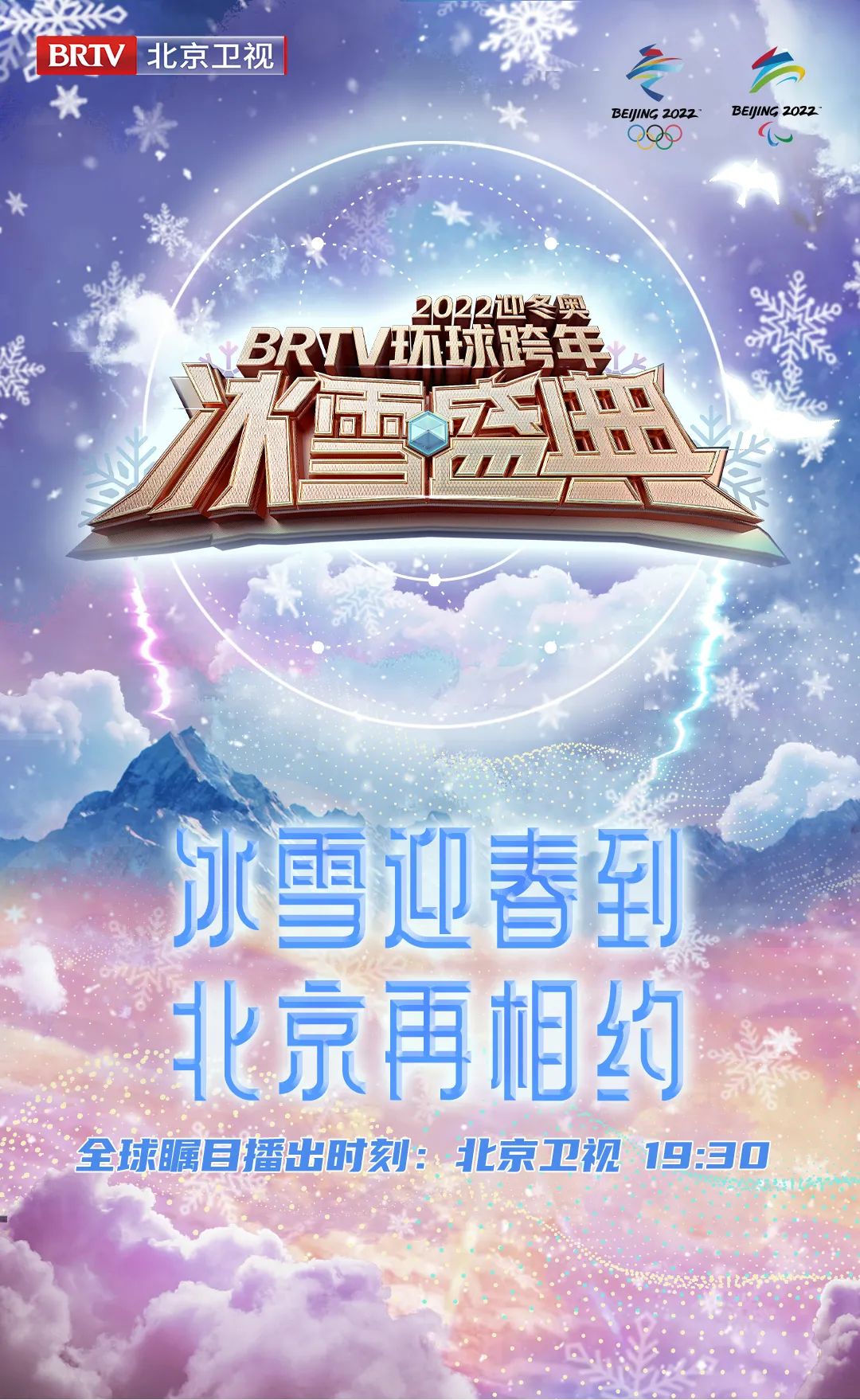 2022迎冬奥北京卫视环球跨年冰雪盛典以“冰雪迎春到,北京再相约”为主题,喊出了“双奥之约,我们准备好了”的主题口号,向全世界展示中国人民迎接北京冬奥的火热心情。