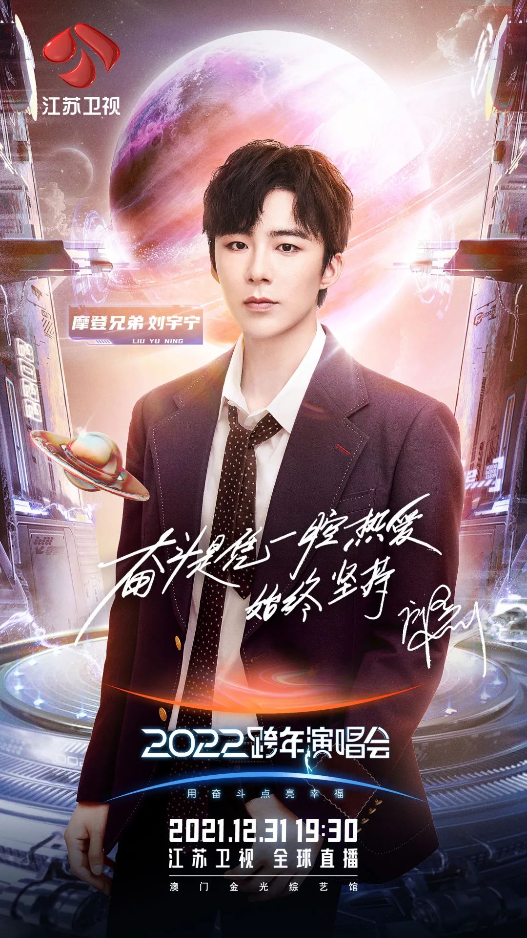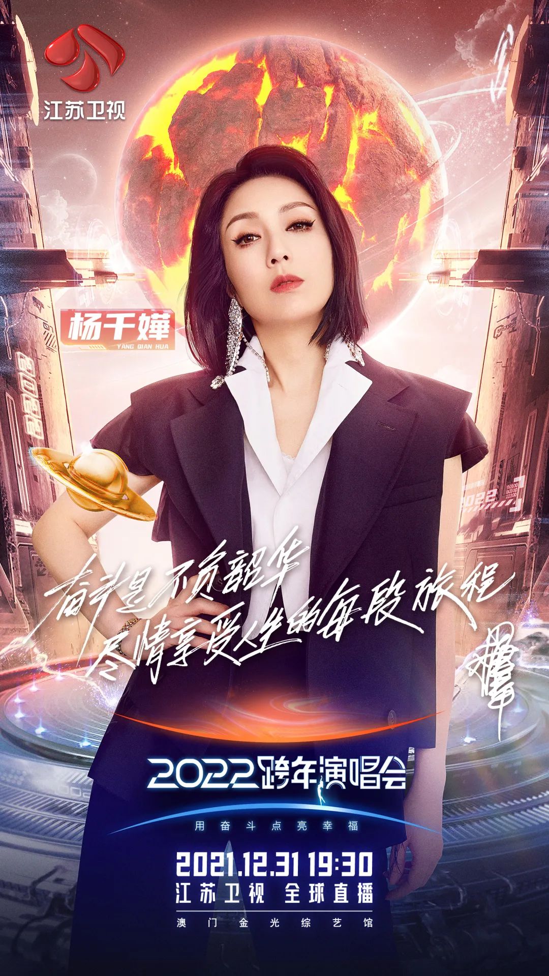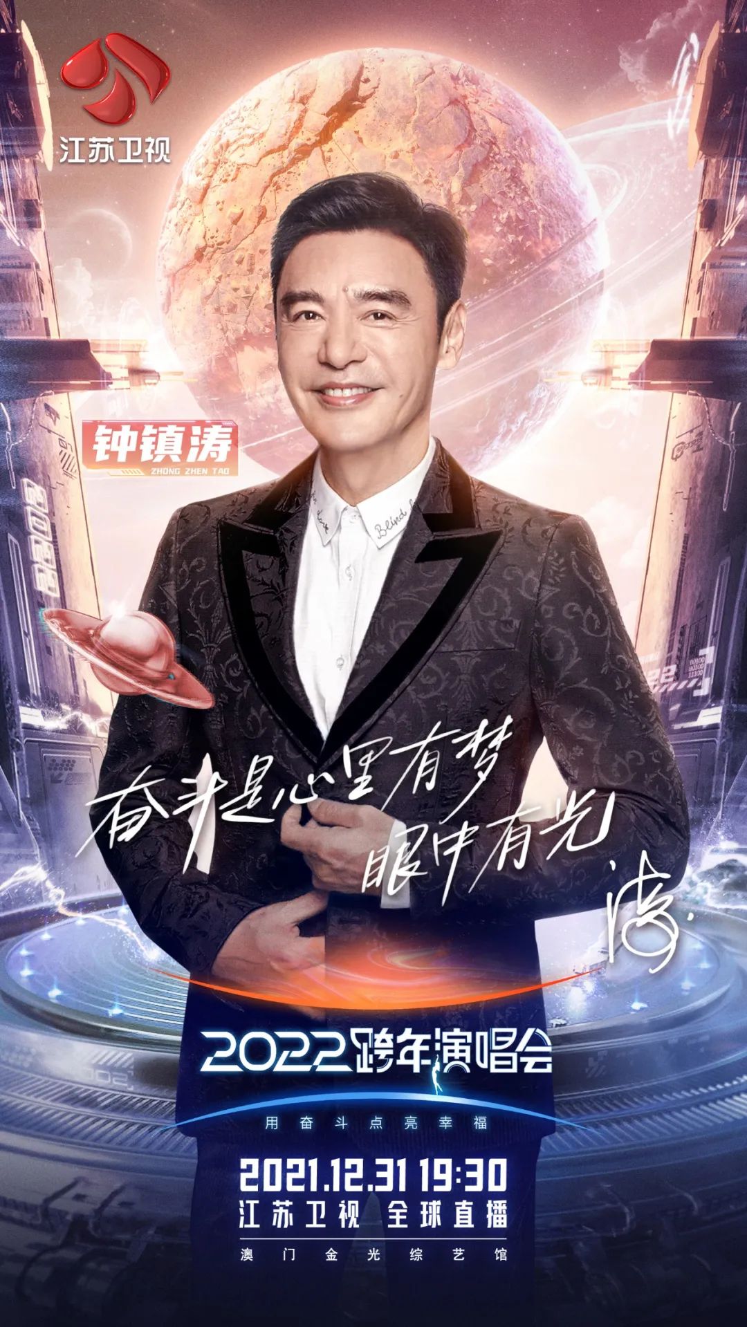 江苏卫视2022跨年晚会以“用奋斗点亮幸福”的主题,邀请来自不同行业的奋斗者,奏响新时代的潮音。