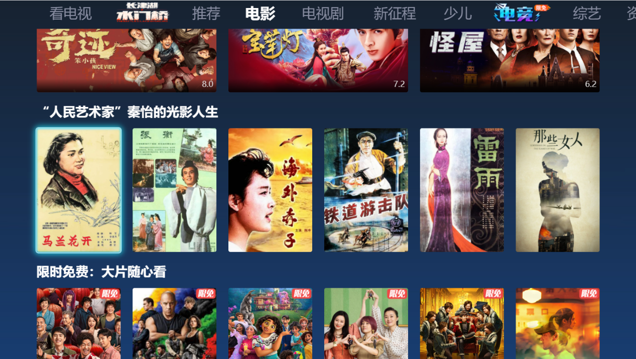 百视通上海IPTV首页上线了主题专区“人民艺术家秦怡的光影人生”,重点推荐秦怡的代表作《海外赤子》、《马兰花开》、《铁道游击队》、《雷雨》、《张衡》、《那些女人》等。百视通电影专区上线“一代人的女神——悼念秦怡”专题,汇集了秦怡主演和参演的影片《铁道游击队》、《海外赤子》、《妖猫传》等。