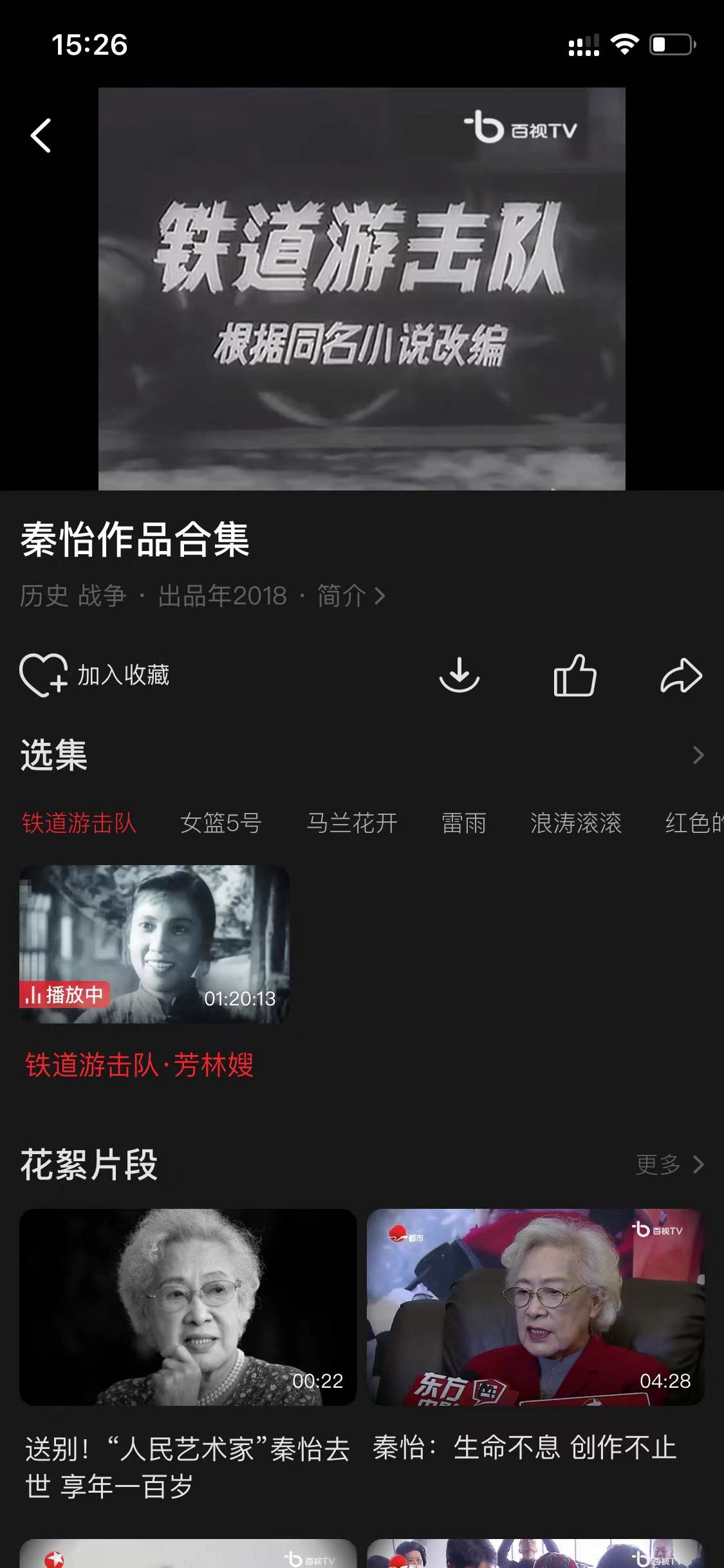 百视TV整合了秦怡的代表电影、聚合了《名家时间》《可凡倾听》《不凡下午茶》等节目中秦怡的专题或深度专访,回顾她的艺术人生,可在首页推荐上点击观看。