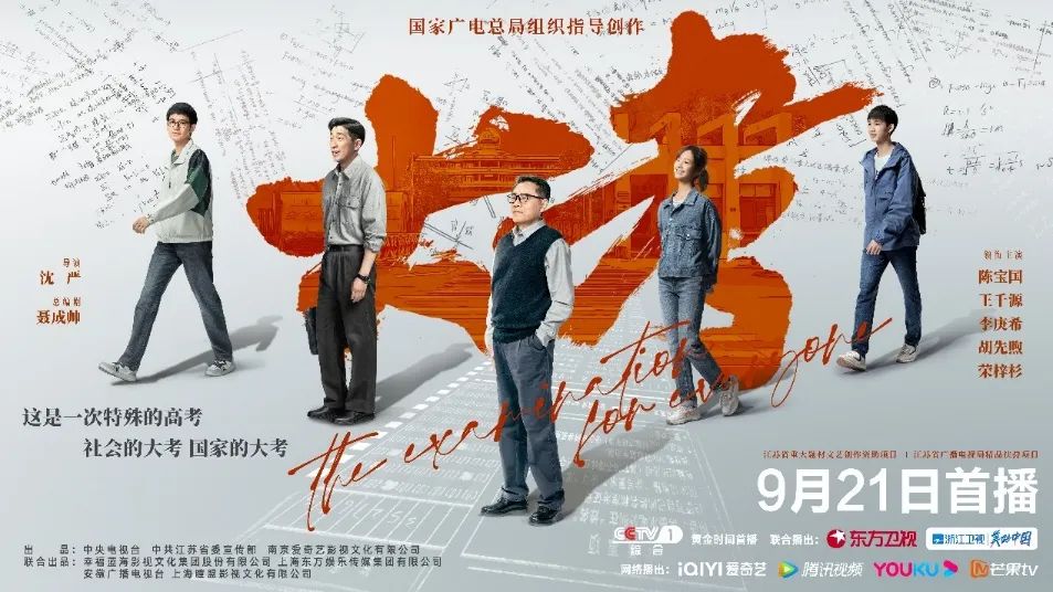 迎接党的二十大重点剧目《大考》由国家广播电视总局组织创作指导,并列入“礼赞新时代 奋进新征程”优秀电视剧播出片单。该剧聚焦2020年疫情下的高考,同时将安徽歙县洪灾导致高考延期的真实故事融入其中,以现实主义笔触再现了特殊时期的高考纪实以及普通人所面临的生活的转轨。以现实为根基,以真实、朴实的烟火气为底色,《大考》刻画了陷入特殊困难时中国社会和中国人民众志成城、共克时艰的动人片段。