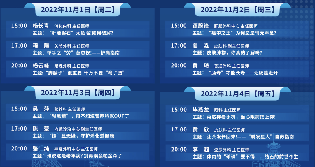 《同济·名医说》直播场次安排