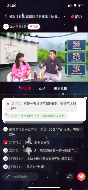 除了提供科学权威的知识分享,每场直播都会为正在观看直播的朋友留出一个与主讲医生互动的专属环节,用户们可以在评论区留言、提问,镜头前的医生也将第一时间在直播间给出专业解答,高效解决大家遇到的健康或就医问题及困惑,真正实现内容服务与用户需求的“双向奔赴”。