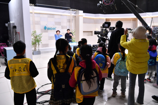 在650平米的演播室里,小学员们零距离观看了主持人们在直播过程中最真实的工作状态。情景教学环节,东方购物主持人们从自身专业出发,引导学员们去全面观察物品,挖掘闪光点,并积极分享自己的感受。最后,“小主播们”一个个尝试着在镜头前闪亮登场、自信表达。短短2小时“我是小主播”研学之旅,小主播们收获了意想不到的快乐和成长。