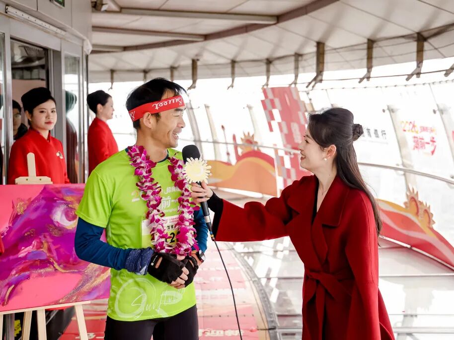 开场节目《梦起东方》用音乐串联起了东方卫视全面焕新以来的多个综艺及线下活动IP。来自社会各界的千余名登高选手,分为男子组、女子组、金葵花组和乐享组,从东方明珠城市广场出发,分别向259米全透明悬空观光廊与90米户外观光廊终点发起挑战。